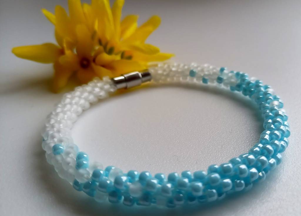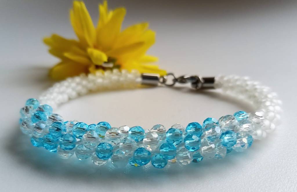 Handmade light Blue and White Ombre Beaded kumihimo Bracelet