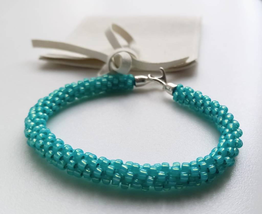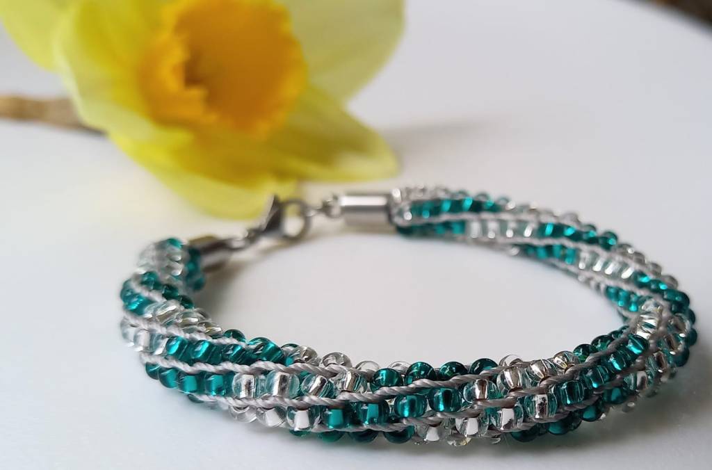 Handmade Teal and Silver Beaded, inside out kumihimo Bracelet.